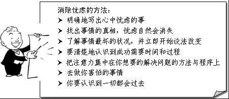诸如此类的说服方法是非常有效的。此外管理者可以鼓励他们明确写出心中忧虑的事情,把它们写出来,因为成年人心中想的东西落在白纸黑字上,会给他带来一些轻松的感觉。另外管理者应该使员工认识到成功需要时间和过程,敦促员工把注意力集中在他想要解决的的问题的方法和程序上。