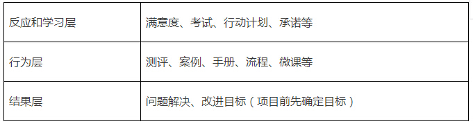 行动计划和承诺:在柯氏四级评估的第二层评估中,关于信心和承诺这两次非常关键。这里尤其体现为对于后期行动计划的承诺。所以在这个维度来看,如果能在培训结束后形成学员对于后期行动的具体计划以及承诺。也可以看成是一种具体的落地。