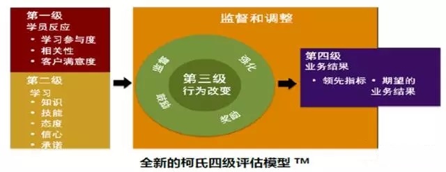柯氏四级评估是培训领域的经典评估模型,如果一个培训能带来学员行为的改变进而得到业务结果,这确实是一件很美妙的事,可是你需要知道的是这个模型的关键在于从第一二层向第三四层跨越时有几个非常关键的动作,包括监督、鼓励、激励、强化等,也就是要得到行为改变和业务结果是需要大量的后期跟踪动作。读过《刻意练习》的朋友应该知道,一个人行为的改变是需要设定目标、刻意练习、辅导反馈等过程的。需要问的是,任何一个培训或者学习项目的成果都是为了这个商业成果吗?答案当然是否定的。