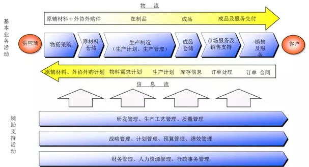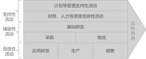 对于单个企业内的专业化分工,最经典的当然是波特模型了,将企业活动划分为研、产、销等创造性活动,采购、物流等辅助性活动,以及财务、人力、计划等支持性活动。