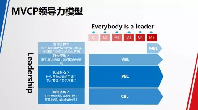 刚才提到的除了我们小众人才项目,大众领导力发展项目给大家介绍一下整体的领导力模型,百度这边我们是有MVCP领导力模型,是一个大的框架,为什么叫MVCP,我们是有4个层面的领导力。