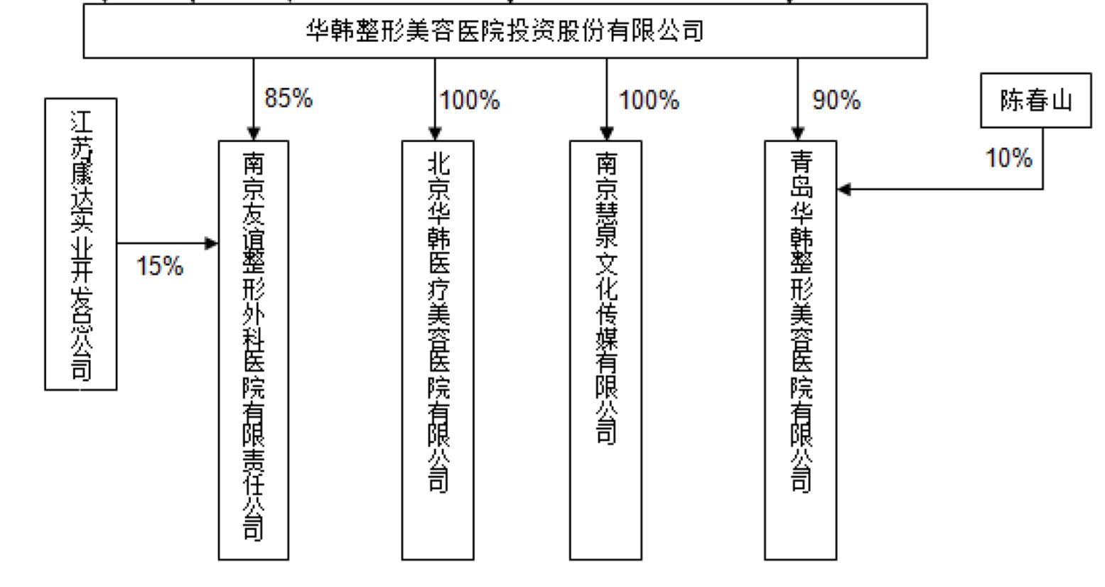 南京友谊医院、青岛华韩均为2010年12月购入。北京华韩(前身为北京星源医疗美容医院)于2012年11月进入华韩整形体系。南京慧泉文化传媒负责网站制作、维护不对外承接业务。
