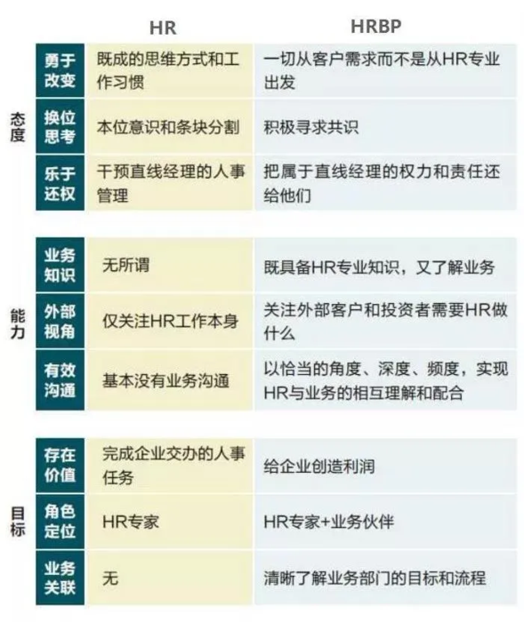 “HR要向HRBP转型”,已经成为了一个热门声音,那么HR与HRB存在着哪些差别呢?下图做了一些总结: