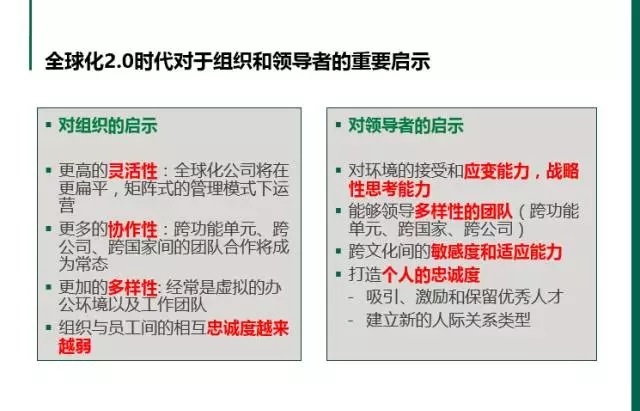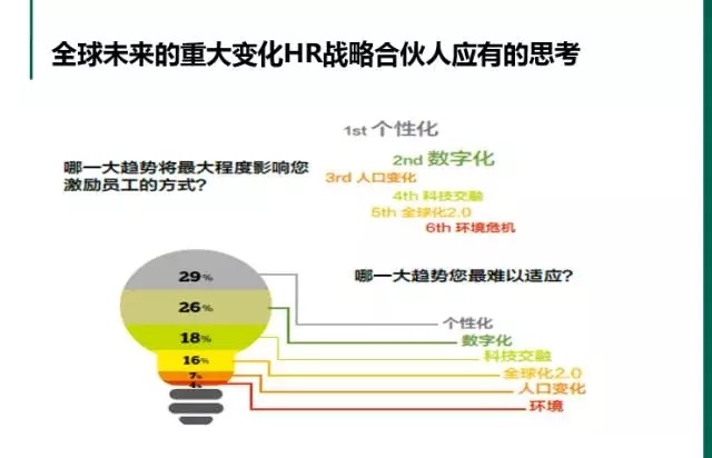 ●价值观多元化。具体表现在工作和生活的平衡,自我充实感和崇尚自我表达以及个人价值观的尊重。同时,个人的敬业度和激励方案多通过“软”的激励方面来实现。