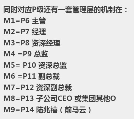 在阿里只有P6(M1)后才算是公司的中层。不同的子公司给出P级的标准不一样。比如:B2B的普遍P级较高,但是薪资水平低于天猫子公司的同级人员。同时到达该P级员工才有享受公司RSU的机会。(低于P6的除非项目出色有RSU奖励,否则1股都拿不到)