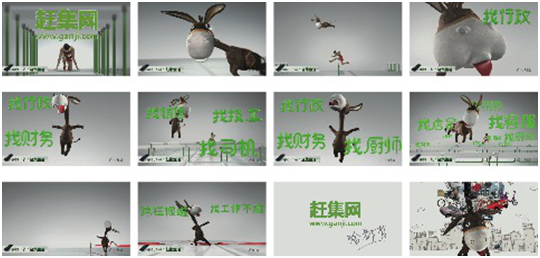 一首耳熟能详的儿歌,一只可爱有趣的毛驴,既有不可复制的声音识别性,又具备了极强的视觉冲击效果,这首被传唱了几十年的童谣,70后80后90后都相当有共鸣,最关键的是,还与赶集网有着天衣无缝的关联。为了强化传播效果,我们在创意中还为小毛驴设计了一个不堪重负而发出的独特的“驴叫声”,使创意增加了极强的独特记忆点。