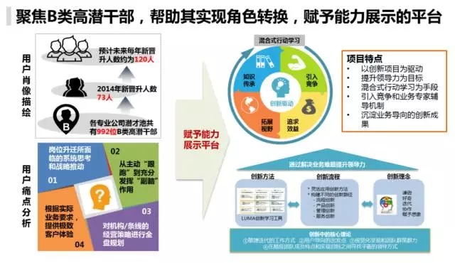 每一个人才发展项目设计都需要全面考虑到不同专业公司的个性化需求,同时又提炼共性。中级经理高潜人才的培养项目也不例外,它比常规项目更为特别的是:既是商业领导力的历练,又是一场创新的行动学习。