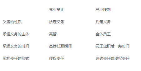 竞业禁止和竞业限制虽然看起来只有二字只差,但是有本质区别。竞业禁止主要是在《公司法》中规定,竞业限制则是在《劳动法》中规定。一个是法定义务,一个是约定义务。为了让HR更明了,我做一简单归纳。