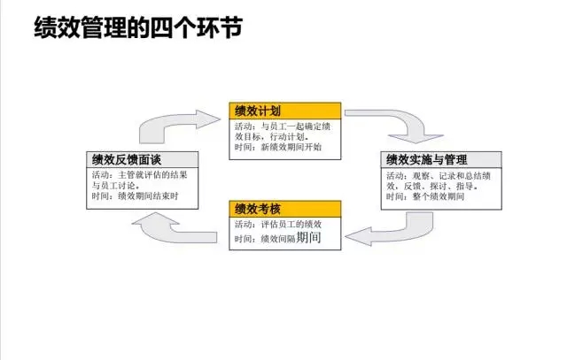 一个简单的解释:所谓的绩效管理是对绩效实现过程中各要素的管理。